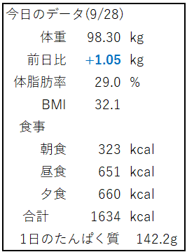 増加していましたが、体脂肪率は29.0%と下がっており、当直や飲み会、足の炎症といったむくみの原因が重なっているためだと考えています。