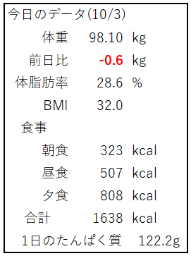 本日の体重は98.1kgで体脂肪率は28.6%でした。