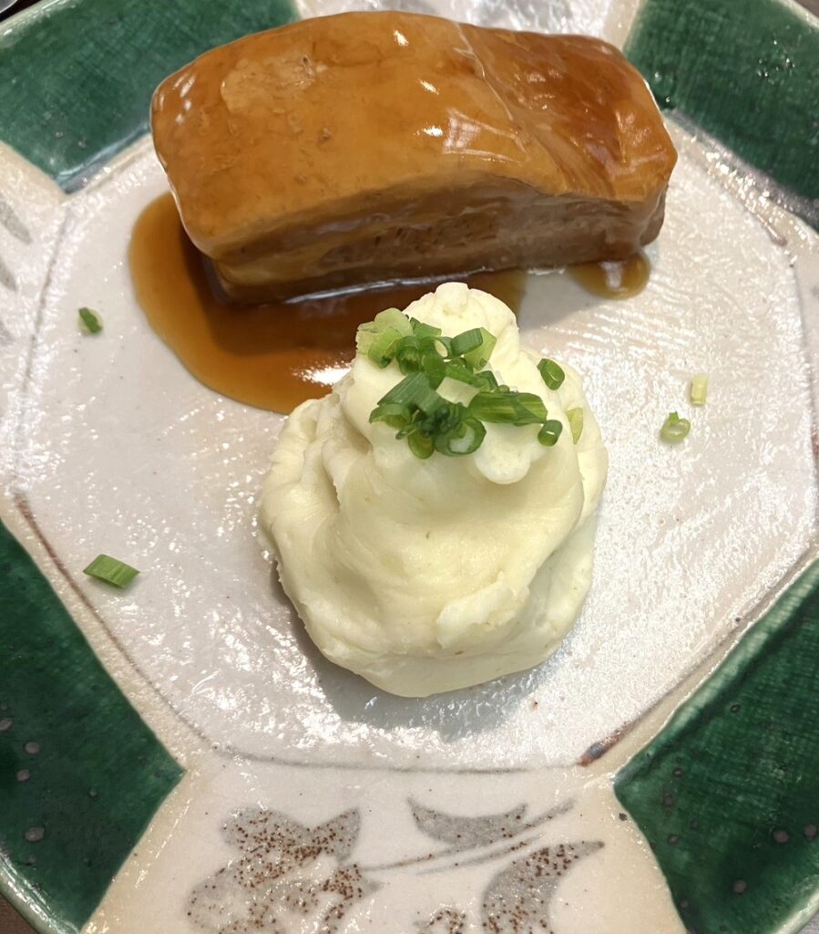 前回も注文した角煮+柚子胡椒ポテサラと卵焼きも安定のクオリティ。