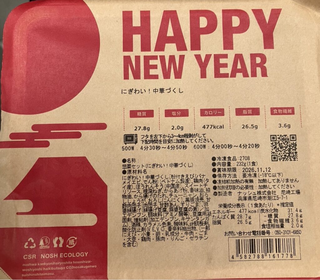 昼は nosh にぎわい!中華づくし(477kcal/P28.7g/F26.5g/C31.4g)。